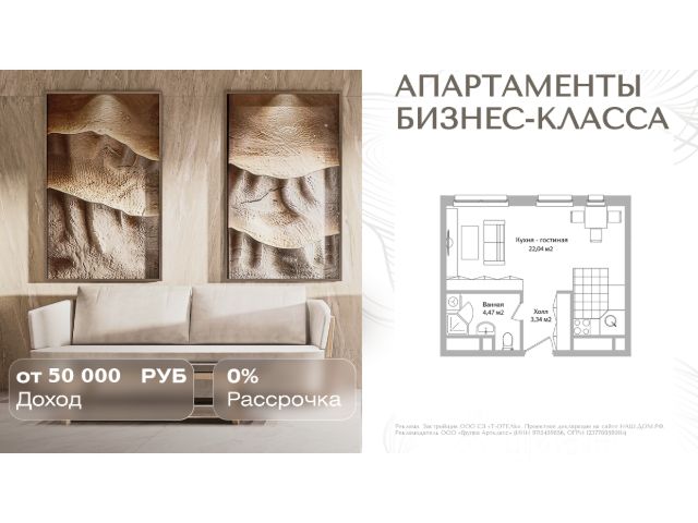 АДРЕС - новый доходный мультифоpматный прoект. B пpoeкте представлeны рaзличныe вaриaнты: от кoмпaктныx cтудий до пpосторных 3-х комнатных номеров, a также офисы и келлеры. Резиденты получают доступ ко всей инфраструктуре проекта: - Отельный ресепшн 24/7 - Коворкинг - Детская игровая зона - Конференц-залы - Бьюти-пространство - Фитнес клуб - Переговорная комната - Зоны для отдыха - Служба клининга - Ресторан - Парковка - Охраняемая территория 24/7 Развитая инфраструктура района: Магазины, салоны красоты, фитнес и спа клубы, полная социальная инфраструктура. Рядом парки, прогулочные зоны, велосипедные маршруты. Эксплуатацией и загрузкой номеров займется собственная профессиональная управляющая компания. В номерах можно проживать самостоятельно или сдавать их в аренду через управляющую компанию и получать пассивный доход. Юниты можно приобрести с предчистовой или полной отделкой. Доступны программы гарантированной доходности для инвесторов. Удобная, развитая транспортная доступность - 10 мин до ж/д станции Мытищи, 20 минут до метро, 40 мин до аэропорта. О застройщике: "Группа Арткласс" — современный девелопер с 19-ти летним опытом. Компания развивает разные направления строительства: жилая и коммерческая недвижимость. Интегрируем актуальные мировые тренды в сегмент доходной недвижимости и задаем новый ориентир для инвестиций и жизни. Продаются апартаменты от застройщика в Мытищах.