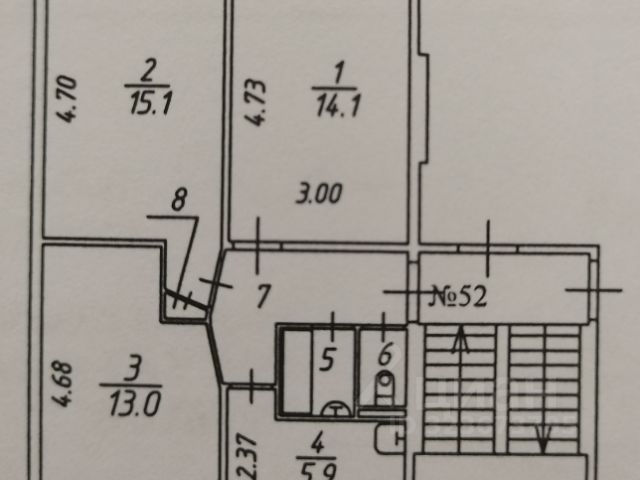 Комната расположена на 3 этаже 4-х этажного кирпичного дома, общая площадь 79,5 кв.м/жилая 21,3/ кухня 8,6 кв.м./санузел раздельный .