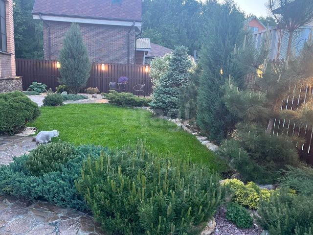 Полностью благоустроенный земельный участок 17,4 соток сочетает красивый ландшафт и удобство отдыха на свежем воздухе. Просторный двор с вымощенными дорожками отлично подходит для семейных вечеров. Декоративный фонтан придает двору особую атмосферу уюта. Также на участке имеется гараж на шесть машин, с дополнительным жилым помещением для персонала на втором этаже, включающим в себя два санузла, кухню, гостиную и спальню.