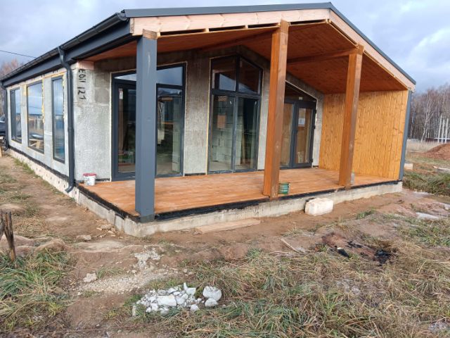 Новый современный дом в лесу у озера — 25 км от Москвы Дом 133 м² на участке 6,5 соток в охраняемом коттеджном посёлке Калипсо Вилладж (деревня Хлябово, Дмитровское шоссе). * 2025 год постройки, никто не жил * Газ подключён, отопление запущено * Панорамные окна, камин, внутренняя отделка и встроенная мебель * Удобная планировка: мастер-спальня с с/у и гардеробной, +2 спальни, большая гостиная-кухня * Благоустроенный участок с газоном * Откатные ворота, бетонная парковка * Управление вентиляцией и светом через Алису с возможностью добавлять сотни устройств и сценариев Посёлок заселён, отличные соседи, охрана и видеонаблюдение. Вокруг лес. Икшинское водохранилище, городской пляж в 10 минутах пешком. В пешей доступности санаторий Минфина с бассейном и спа, закрытый пляжный клуб Икша Ривер Клаб Школа и детский сад — в 5-10 минутах на машине . Электричество, газ, вода, септик — всё подключено и функционирует. Единственный собственник, документы готовы. Быстрая сделка. Дом имеет два уровня потолков. В зоне кухни-гостиной высота 4,1м. Вход в дом и выход на террасу в одном уровне без ступенек. Въезд на участок и технические помещения с севера. Наружные стены из газобетона, внутренние из крупноформатных силикатных блоков. Плоская кровля с гидроизоляцией ПВХ мембраной по монолитному перекрытию. Межкомнатные перегородки 115мм из силикатных блоков максимальная звукоизоляция среди штучных стеновых материалов. Утепление крыши 200мм, полы 150мм. Компрессорная ЛОС Итал-БИО. Рециркуляция ГВС.По всей площади выполнены водяные теплые полы с краевыми зонами у панорамного остекления. Все стеклопакеты с теплыми дистанционными рамками и мультифункциональными стеклами. В гостиной окна высотой 4м без перемычек. Угловой дровяной камин шириной 1000мм. Установлена адаптивная вентиляционная установка с контролем уровня углекислого газа и тихой кухней. Хозяйская спальня с проходной гардеробной и собственным выходом на террасу. Потенциальные детские одинаковой площади. Все технические зоны расположены в сторону дороги, а дом посажен максимально сохраняя полезную площадь участка. Залиты бетонные площадки для парковки на два автомобиля и террасы. В настоящий момент завершаются отделочные работы и установка мебели. Купить дом без посредников в городском округе Мытищах Московской области.