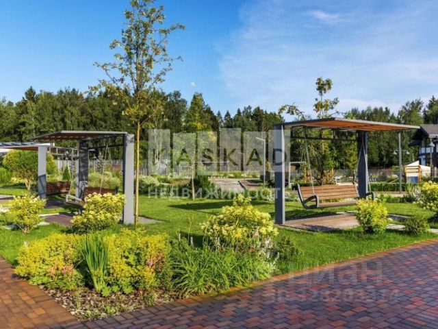 На придомовом участке - озеро с водопадом, беседка с камином, дорожки,