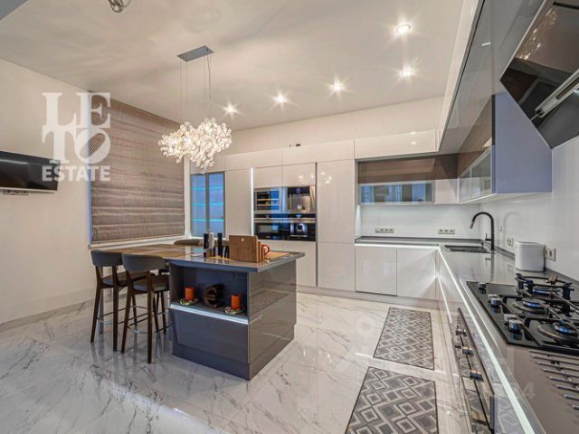 Установлены двери "Agoprofil", эксклюзивные витражи, панно австрийского художника Janusza Strzalkowski. В доме выполнена чистовая отделка всех помещений, установлена кухня Berloni, вся техника MIELE, в сан. узлах сантехника и мебель фирм VILLEROY & BOCH, HANSGROHE, ZEHNDER, KEUCO, JACUZZI, GESSI