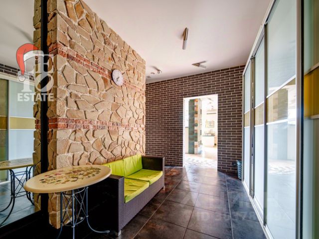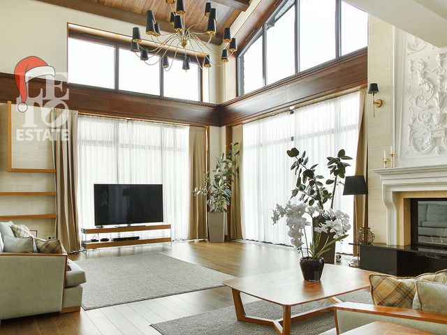 Основной дом 560 кв.м: 4 спальни, кухня, столовая-гостиная, гостиная с камином и вторым светом, кабинет, спортивный зал, гараж на 2 м/м со стеклянными воротами. Гостевой дом 126 кв.м: 3 спальни, 2 с/у, кухня - гостиная, гараж на 1 м/м.