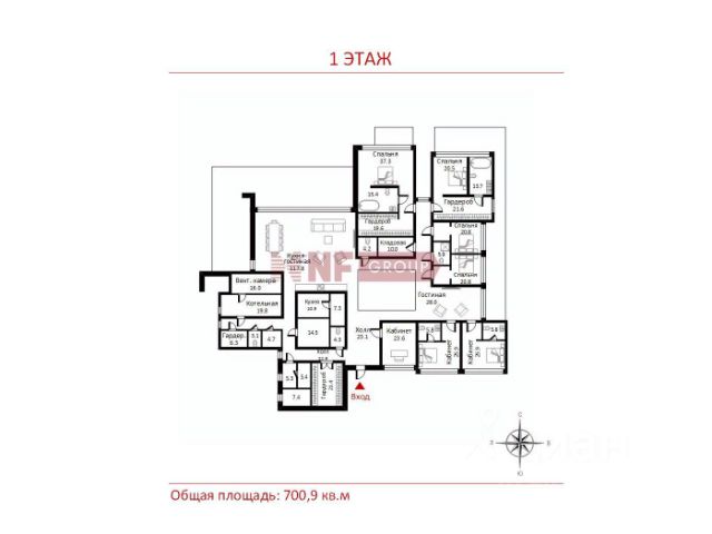 Лот: 9923004. ЭКСКЛЮЗИВ NF GROUP. Двухэтажный дом площадью 837 м² расположен в коттеджном посёлке "Пирогово Коллекция" всего в 16 км от МКАД по Дмитровскому шоссе. "Пирогово Коллекция" — продуманная экосистема всего в 20 минутах от Москвы, где архитектура гармонично сочетается с природным ландшафтом, а развитая инфраструктура формирует высокий уровень жизни: от гольфполя и яхтклуба до спаотеля. Дом находится в лесной зоне посёлка. Архитектура выполнена в стиле современного минимализма: чёткая геометрия форм, выразительные горизонтальные линии, плоская кровля с глубокими выносами и панорамное остекление. Планировка дома тщательно продумана с точки зрения эргономики. На первом этаже располагается просторный холл с гардеробной и гостевым санузлом. Центральное место занимает просторная кухнягостиная с выходом на террасу. Поблизости оборудованы техническая кухня и кладовая. Также на первом этаже расположена мастерспальня с собственным санузлом и гардеробной. Рядом находятся две гостевые спальни, каждая с отдельным санузлом, и кабинет Технические и вспомогательные помещения (прачечная, котельная, вентиляционная камера, серверная) вынесены в отдельный блок и органично интегрированы в общую планировку. Второй этаж включает: мастер-спальню и две детские спальни, каждая с собственным санузлом и гардеробной. Отдельная зона выделена под детскую гостиную. Отличный дом премиум класса в деревне Ульянково Московской области.