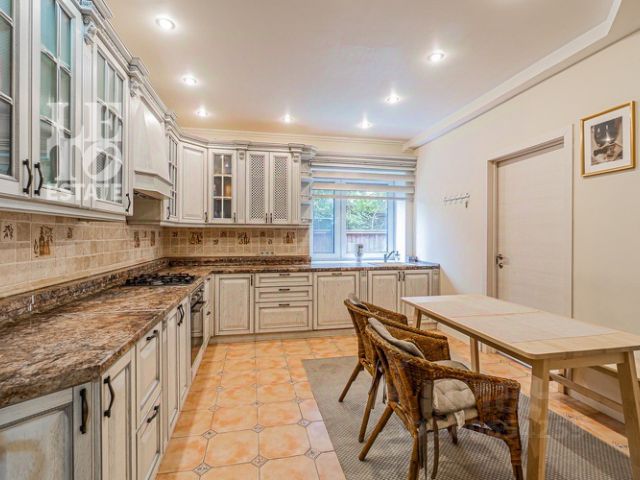 Арт. 34970665 Вашему вниманию представляется трехэтажный дом, расположенный в деревне Беляниново. Дом общей площадью 412.6 кв.м. расположен на благоустроенном участке 23.69 соток. Участок ровный, правильной формы, со всех сторон огорожен забором с автоматическими воротами. Помимо основного дома на участке расположены навес на 3 автомобиля и детская площадка. Въездная группа вымощена тротуарной плиткой и позволяет припарковать еще 3 автомобиля. Дом выполнен из высококачественных строительных материалов. Фундамент монолитный, стены кирпичные, кровля - металлочерепица. Дизайн интерьера выполнен в классическом стиле и светлых тонах. Установлена вся необходимая мебель и бытовая техника для комфортного проживания. Дом оборудован сплит-системой, системой водоподготовки и охранной сигнализацией. Ключевым местом в доме является светлая и просторная гостиная с мраморным камином и детской игровой зоной. В стоимость дома входит только встроенная мебель. Подключены все коммуникации: магистральный газ, центральная канализация, скважина, электричество 15 кВт. Имеется дополнительный генератор. Планировка дома Цокольный этаж: гараж на 4 автомобиля, бойлерная с системой водоподготовки. Первый этаж: прихожая, холл, санузел с постирочной, гостиная с камином и детской игровой зоной, кухня, котельная. Второй этаж: ванная комната с сауной, детская спальня, 3 спальни, зимний сад. Мансардный этаж: помещение свободного назначения с тремя вместительными кладовыми. деревня Беляниново расположена в 7 км от МКАД по Осташковскому шоссе. От деревни курсирует общественный транспорт до м. Медведково можно доехать за 25 минут. В Беляниново находится вся необходимая инфраструктура: школа, детский сад, спортивная площадка, детская площадка, дом культуры, фельдшерский пункт, спортивный центр, конный клуб, продовольственные магазины. Пироговское и Клязьминское водохранилище с благоустроенными пляжными зонами в 10 минутах на транспорте. Прямой выход Пироговский лесопарк с пешеходными и вело дорожками. Очень тихое и экологически чистое место для постоянного проживания и отдыха с семьей и друзьями. Купить дом на улице Центральная в деревне Беляниново.