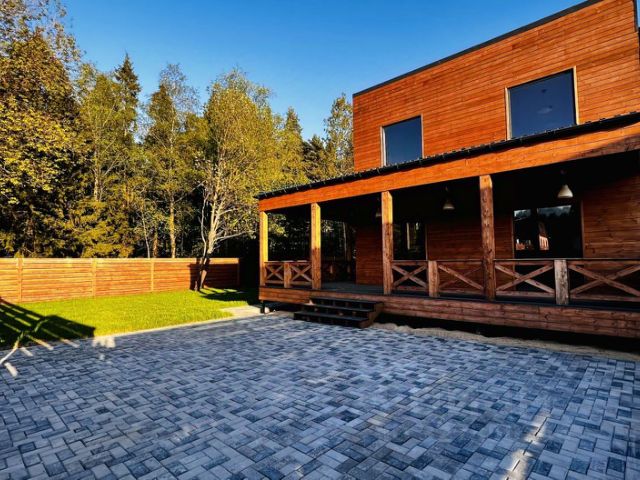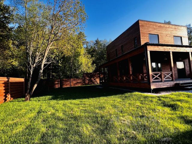 Дoм в КП Тишково берег Коттеджный посёлок Тишково Берег — это тишина и экология. Находясь на удалении 29 км от МКАД, посёлок расположился в живописном и тихом месте, в окружении леса у большой воды в Пушкинском районе, в 200 метрах от берега Пестовского водохранилища. На десятки км нет ни одного промышленного предприятия, что говорит об этом районе, как об одном из самых экологически чистых в Подмосковье. Пестовское водохранилище 2 км шириной является одним из самых крупных водоёмов в системе канала имени Москвы. Ближайшее окружение посёлка Тишково Берег представлено разнообразием центров досуга, спортивных комплексов, курортов, санаториев, кафе, ресторанов, клубов, пляжей и иных точек притяжения в числе которых: Сорочаны, Волен, Яхрома, Клуб Л. Тягачева, Солонцово, Саракс, Славино, Лисья нора, Парк-Экстрим. Стены дома выполнены из перекрёстно-склеенных деревянных панелей - СLТ-панели (это не каркас!) Фасад отделан финишной доской скандинавка.Фундамент - ж/б плита. Отопление - тёплые полы и от электрокотла. Кровля - клик-фальц Grаndlinе. Панорамное остекление. В доме: прихожая, техническое помещение (котельная) с с/у, кухня -гостиная с выходом на террасу, три спальни, санузел с ванной. Управление через приложение освещением и отоплением.