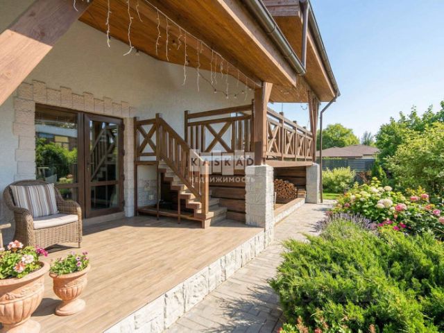 На участке — ухоженный газон, система автоматического полива и дренажная система. Перед домом - парковка на 4-5 автомобилей. Вся придомовая территория и дорожки на участке вымощены толстым керамогранитом, обеспечивающим прочность, долговечность и эстетичный внешний вид.