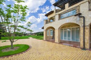 Первый этаж: прихожая, гардеробная, гостевой санузел, кухня, кладовая, столовая, гостиная со вторым светом, кабинет, постирочная, гостевая спальня со своим санузлом и гардеробной, парная с купелью и душевой зоной, зона отдыха с кухней, санузел, бассейн, котельная, гараж на две машины, кладовая, квартира для персонала с отдельным входом;
