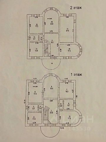Второй этаж: кабинет, первый блок (2 спальни, ванная, гардеробная), второй блок (2 спальни, ванная, гардеробная, большой балкон).