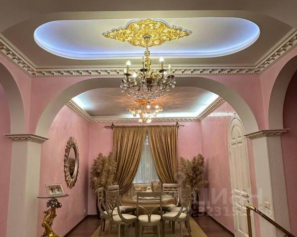 Дом 2013 года постройки, состоит из двух этажей, а также цокольного, полностью меблирован и готов к проживанию, ремонт выполнен из дорогих, высококачественных материалов. Центром притяжения в доме, является большой холл с массивной лестницей из кавказского дуба и вторым светом. Также дом располагает пятью спальнями, зимним садом с зоной барбекю и террасой, зоной СПА с бассейном и сауной, в мансарде расположен спортзал. Дом стоит на монолитно-ленточном фундаменте глубиной 2,4 м. В стоимость входит отдельно стоящее здание с гаражом на первом этаже и квартирой для персонала на втором этаже. Несколько уровней подготовки и очистки воды. Все коммуникации центральные, отопление газовым котлом, мощностью 60 кВт. На участке выполнен ландшафтный дизайн, дорожки вымощены тротуарной плиткой, высажены плодовые, а также хвойные деревья, дубы, кустарники, цветы, виноград. Украшает сад пруд с фонтаном и рыбками. Поселок под круглосуточной охраной. До Пироговского водохранилища 4 км.