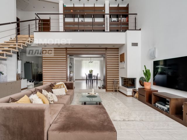 Поднимаясь на первый уровень, вы попадаете в просторный холл, который плавно перетекает в гостиную со вторым светом и высокими потолками. Рядом кухня-столовая с зоной отдыха и прямым выходом на участок, где можно наслаждаться свежим воздухом. Этот этаж дополняют гостевая спальня, светлая комната с панорамным остеклением, которая подойдет под кабинет или зимний сад, а также санузлы и постирочная для повседневного удобства.