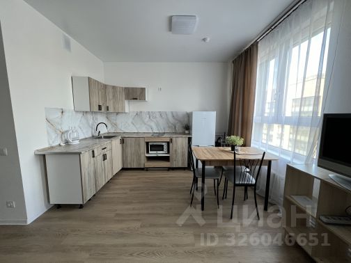 Просторная кухня-столовая оборудована всей необходимой техникой (встроенный холодильник, посудомойка, варочная панель и встроенный духовой шкаф, встроенная микроволновая печь и вытяжка). Вся мебель и техника - новые и остаются в подарок покупателю.