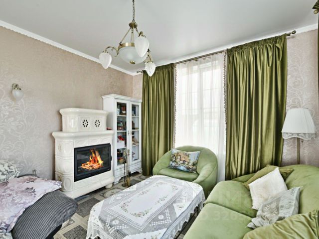 * Гостиная с эркером, дровяным изразцовым КАМИНОМ- 36.6
