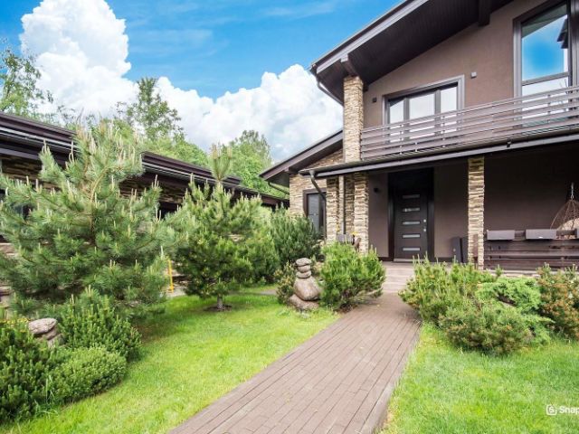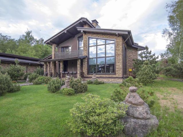 Основной дом 560 кв.м: 4 спальни, кухня, столовая-гостиная, гостиная с камином и вторым светом, кабинет, спортивный зал, гараж на 2 м/м со стеклянными воротами. Гостевой дом 126 кв.м: 3 спальни, 2 с/у, кухня - гостиная, гараж на 1 м/м.