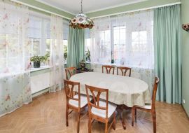 Интерьер гостевого дома выполнен в светлых оттенках, создавая уютную атмосферу. Внутреннее пространство дома оснащено всем необходимым для комфортного пребывания. Кухня укомплектована современной бытовой техникой, а спальные комнаты полностью меблированы. В нем Вы сможете не только наслаждаться отдыхом, но и контролировать процесс ремонта в основном доме. Кроме того, в гостевом доме предусмотрены кухня-гостиная, три спальни, три санузла и баня с зоной отдыха.