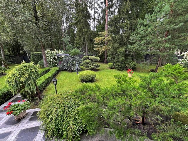 На участке — ухоженный газон, система автоматического полива и дренажная система. Перед домом - парковка на 4-5 автомобилей. Вся придомовая территория и дорожки на участке вымощены толстым керамогранитом, обеспечивающим прочность, долговечность и эстетичный внешний вид.