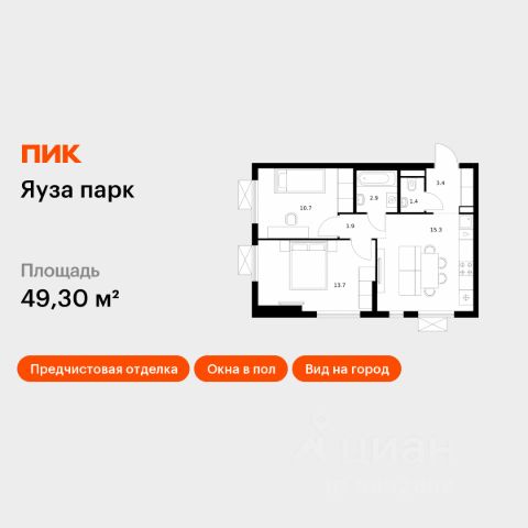 Продаётся 2-комн. квартира площадью 49,3 кв.м на 17 этаже 24 этажного дома (Корпус 10, Секция 1) проекта ПИК Яуза парк. Светлый просторный подъезд на уровне земли, функциональная планировка, большие окна, предчистовая отделка. Жилой квартал "Яуза парк" возводится в Мытищах, в 5 минутах ходьбы от одноимённой ж/д станции. Проект включает 20 домов разной этажности с благоустроенными дворами-парками. Сейчас в квартале началось строительство новых корпусов 7-12. Это отличная возможность купить квартиру по стартовой цене. Индивидуальный дизайн фасадов разработали архитектурные бюро KATARSIS и RHIZOME. Вблизи жилого квартала появятся шумопоглощающие экраны, позволяющие забыть о том, что неподалёку находятся железнодорожные пути. На первых этажах домов откроются магазины, кафе, салоны красоты и другие полезные сервисы. Рядом есть школы и детские сады, магазины и ТРЦ "Красный кит". На территории проекта появится благоустроенная набережная реки Яузы и пешеходный бульвар для прогулок всей семьёй. Водонапорную башню XIX века, расположенную на территории "Яуза парка", мы реставрируем и создадим вокруг неё общественное пространство для отдыха жителей квартала. Для прогулок отлично подойдёт Мытищинский центральный парк культуры и отдыха, расположенный в 10 минутах ходьбы, и Лосиный остров — в 24 минутах. Дорога на автомобиле до Ярославского шоссе займёт не более 3 минут, до МКАД — 10 минут. Артикул 999433 (Застройщик ООО "Специализированный "НМ-Консалт") Купить квартиру площадью примерно 50 м2 (кв.м.) в Мытищах.