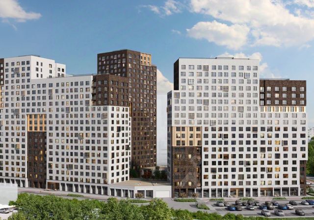 Жилой комплекс состоит из 5 корпусов переменной этажности, выполненных в индивидуальной архитектурной стилистике. Объёмные декоративные фасады, сочетание бетонной плитки под клинкерный кирпич, штукатурки и металла формируют динамичный и выразительный облик. Проект дополняют выносные эркеры, террасы, стилизованные корзины под кондиционеры и архитектурная подсветка. Цветовая палитра домов — белый, тёмно-графитовый и глубокий коричневый — подчёркивает современный характер комплекса.