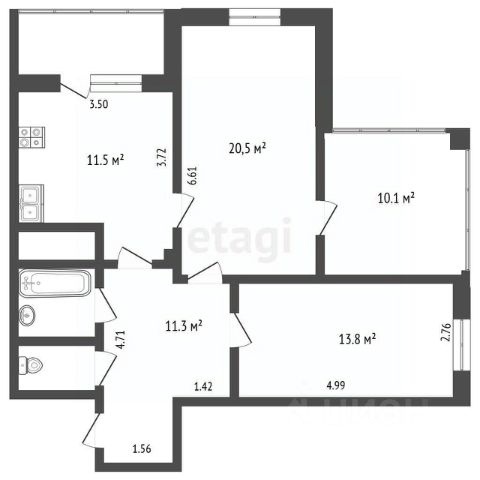 КВАРТИРА общей площадью 71,5 кв.м.