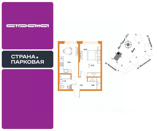 Рассрочка 0% с первым взносом от 20%, ипотека с субсидией или наличные. Подберём способ оплаты индивидуально. Покупайте квартиру сейчас — заезжайте уже в следующем году! Продается 1комнатная квартира на 10 этаже от застройщика Страна Девелопмент. Площадь квартиры 41.55 кв. м. Жилой комплекс ЖК "Страна.Парковая" строится в самом центре Мытищ в 15 мин. пешком от парков Мира и Яузы. Внутри квартала — детский сад, приватные дворы, стрит-ритейл на первом этаже, множество мини-парков и прогулочный мост-акведук. За 15 мин. вы сможете дойти до ж/д станции Мытищи, за 20 мин. на авто доехать до метро "Медведково" и ВДНХ. ПРЕИМУЩЕСТВА Закрытые дворы. Видеонаблюдение 24/7, доступ по системе контроля, отдельные въезды для спецтехники. Планировки под любой жизненный сценарий — от компактных студий до евро-3 с террасой; Благоустройство территории. Несколько парков, спортивные и детские площадки, амфитеатр с гамаками и шезлонгами и др. Тёплый паркинг. Видеоконтроль, лифт до нужного этажа, стандартные и семейные места. Лобби с коворкингом. Здесь можно подождать такси на мягком диване или даже поработать за столом. Дизайнерская отделка При покупке квартиры в ЖК "Страна.Парковая" можно приобрести ремонт от застройщика. 4 стиля отделки для ванной и 5 вариантов для остальных комнат — на выбор. Кухня от застройщика Одна из удобных опций от Страны — приобретение кухни в ипотеку при покупке опции "Ремонт". Доступно 4 стиля на выбор: дерево, керамика, мрамор, бетон. Умный дом Функция "Умный дом" позволит перейти на новый уровень комфорта. Управляйте светом в квартире с помощью голоса, получайте информацию о ситуации в квартире, находясь на работе или в отпуске. СПОСОБЫ ПОКУПКИ Сотрудники "Страна Девелопмент" будут сопровождать вас на каждом этапе сделки, помогут получить одобрение по ипотеке или снизить ежемесячный платеж. Доступны гибкие варианты оплаты: - ипотека (стандартная/с субсидией/траншевая) - рассрочка (с ПВ от 20%) - с использованием материнского капитала - оплата наличными