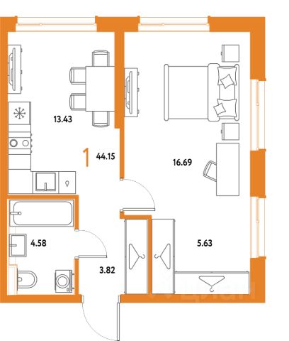 Прямая продажа от девелопера. В жилом квартале, расположенном в северо-западной части города Мытищи, продаётся 1-спальная квартира площадью 48.40 кв.м без отделки. Квартира расположена на 15 этаже 18-этажного дома, корпус 41, в жилом квартале комфорт-класса "Новое Медведково" (девелопер Ingrad).