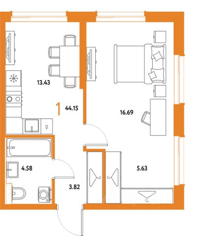 Вход в комнату ни через кухню-гостинную а отдельно из коридора,что является большим плюсом! Отделка "вайт бокс"(предчистовая).