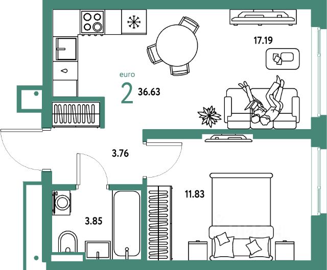 В квартире сделан современный евроремонт. Планировка предусматривает одну светлую комнату и просторную кухню, где можно комфортно готовить и обедать. Санузел совмещенный, что удобно для ежедневного использования. Окна выходят во двор, поэтому в квартире тихо, а значит, можно спокойно отдыхать. Есть лоджия, где можно обустроить зону отдыха или хранить вещи.