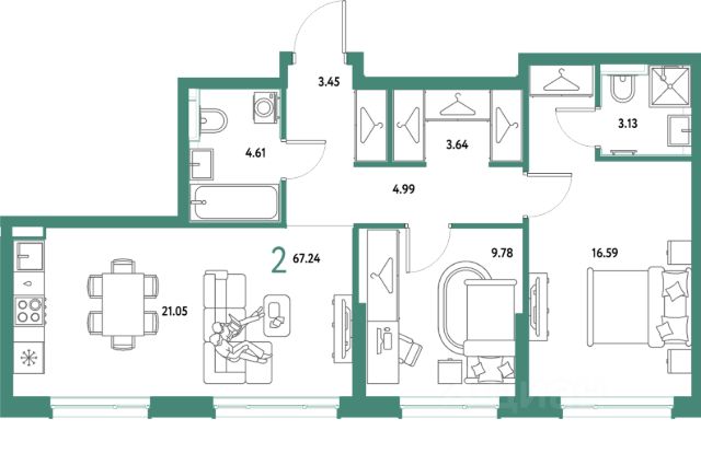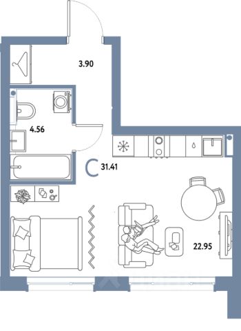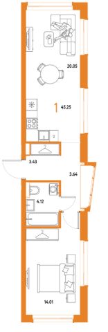Обратите внимание, что цена подразумевает продажу данной квартиры без мебели, которую вы видите на фото (покупателю остаются встроенный шкаф, гардеробная и кровать с ортопедическим матрасом, изготовленная под размеры зоны спальни). Всю остальную мебель (включая кухонный гарнитур) продавец забирает с собой в новую квартиру. По запросу Покупателя кухня может быть оборудована электроплитой и раковиной.