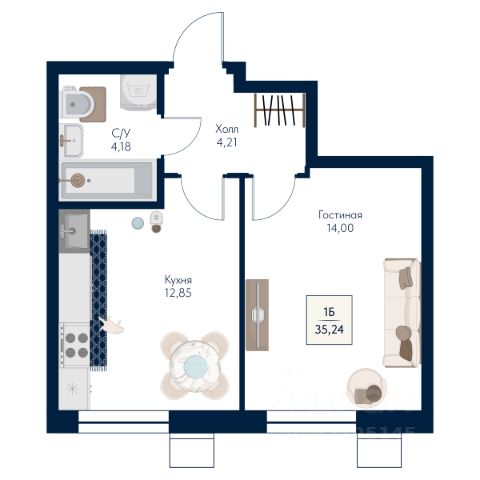 • ✅ Минимальная площадь: 35,2 м²