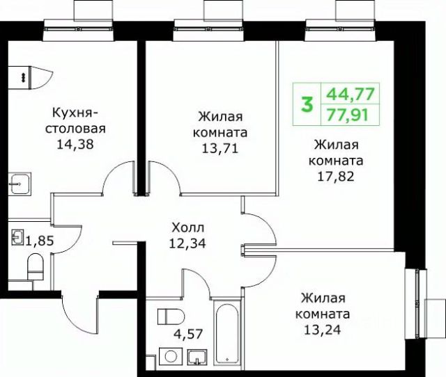 Самая ТОПОВАЯ планировка с большой кухней гостиной почти 18 кв.м, которая превращает однушку в полноценную двушку.