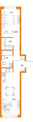 Продаётся 1-комнатная квартира в строящемся доме (Дом 2), срок сдачи: IV-кв. 2027, общей площадью 46.92 кв.м., на 5 этаже. Многоэтажные жилые дома с объектами инфраструктуры, расположенные по адресу: Московская область, г.о. Мытищи, г.Мытищи, мкр. 18Б, ул. Комарова.