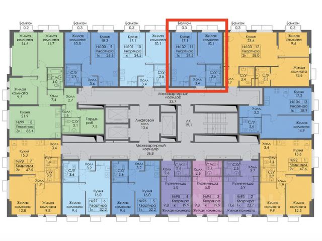 • Общая площадь:58,9 м²
