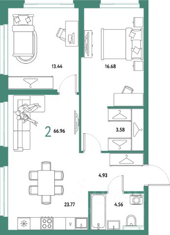 Максимально грамотная планировка для двухкомнатной квартиры.