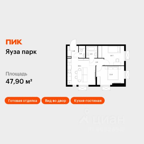 Продаётся 2-комн. квартира площадью 47,9 кв.м на 20 этаже 24 этажного дома (Корпус 6, Секция 1) проекта ПИК Яуза парк. Светлый просторный подъезд на уровне земли, функциональная планировка, большие окна, c отделкой. Жилой квартал "Яуза парк" возводится в Мытищах, в 5 минутах ходьбы от одноимённой ж/д станции. Проект включает 20 домов разной этажности с благоустроенными дворами-парками. Сейчас в квартале началось строительство новых корпусов 7-12. Это отличная возможность купить квартиру по стартовой цене. Вблизи жилого квартала появятся шумопоглощающие экраны, позволяющие забыть о том, что неподалёку находятся железнодорожные пути. На первых этажах домов откроются магазины, кафе, салоны красоты и другие полезные сервисы. Рядом есть школы и детские сады, магазины и ТРЦ "Красный кит". На территории проекта появится благоустроенная набережная реки Яузы и пешеходный бульвар для прогулок всей семьёй. Водонапорную башню XIX века, расположенную на территории "Яуза парка", мы реставрируем и создадим вокруг неё общественное пространство для отдыха жителей квартала. Для прогулок отлично подойдёт Мытищинский центральный парк культуры и отдыха, расположенный в 10 минутах ходьбы, и Лосиный остров — в 24 минутах. Дорога на автомобиле до Ярославского шоссе займёт не более 3 минут, до МКАД — 10 минут. Артикул 940953 (Застройщик ООО "Специализированный "НМ-Консалт")