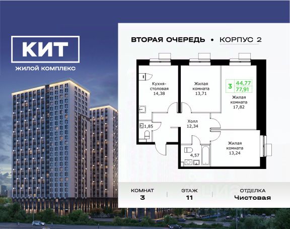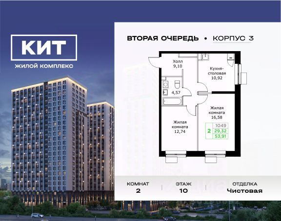 Дом сдан. Выдаем ключи! Продаётся 2-к квартира 54.7 кв.м. без отделки в ЖК "КИТ" на 8-м этаже 25 этажного дома. Жилой комплекс "Кит" спроектирован в урбанистической концепции "Город в Городе". Объект бизнес-класса предлагает рациональный подход к набору опций, необходимых для гармоничной жизни. Проект представляет собой два корпуса, которые образуют единую приватную территорию. Ее доминантой является двор с красивым ландшафтным дизайном и различными зонами, ориентированными на интересы жителей разного возраста. При создании пространства в приоритет ставился комфорт жителей. В шаговой доступности находятся торговый центр, рестораны, кинотеатры, спортивный зал, образовательные учреждения и много других сфер услуг. Преимущества проекта: - Видовые характеристики (просматриваются Москва - Сити и Останкинская телебашня) - Широкая квартирография по всем типам квартир - Увеличенное остекление - 3 варианта отделки: без отделки, white box или чистовая отделка в скандинавском и итальянском стилях - Школа и детский сад рядом - Богатая развлекательная инфраструктура - Высокий уровень безопасности территории Расположение комплекса: - 5 минут пешком до ж/д "Мытищи" и автовокзала: - 19 минут до станции м. "Комсомольская" - 30 минут до станции м. "Медведково" - 2,2 км до Волковского шоссе - 2,8 км до Ярославского шоссе - 5,7 км до МКАД