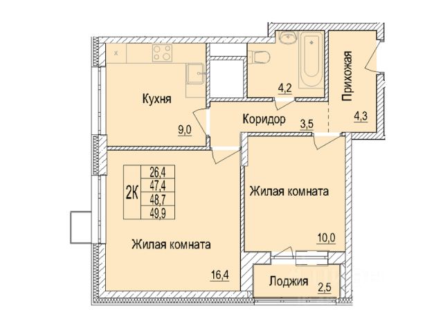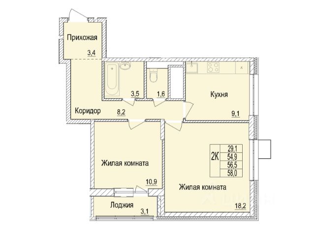 2 -х комнатная квартира 69,1 м2 в кирпичном Доме в Парке у Набережной.