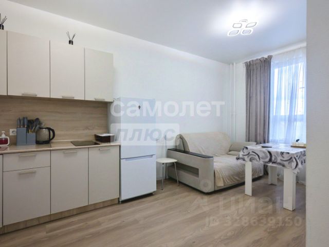Общая площадь квартиры составляет 33.7 кв.м., отдельная жилая комната площадью 10 кв.м. и кухня-гостиная площадью 17 кв.м.