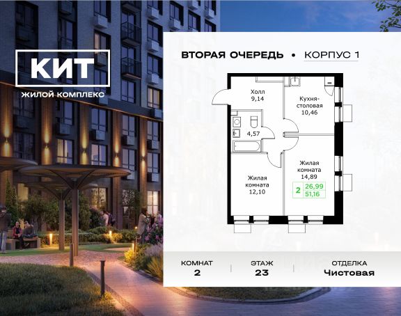 Продаётся 1-к квартира 39.68 кв.м. без отделки в ЖК "КИТ2" на 23-м этаже 25 этажного дома.Жилой комплекс "Кит 2" спроектирован в урбанистической концепции "Город в Городе". Объект бизнес-класса предлагает рациональный подход к набору опций, необходимых для гармоничной жизни. Проект представляет собой два корпуса, которые образуют единую приватную территорию. Ее доминантой является двор с красивым ландшафтным дизайном и различными зонами, ориентированными на интересы жителей разного возраста. При создании пространства в приоритет ставился комфорт жителей. В шаговой доступности находятся: торговый центр, рестораны, кинотеатры, спортивный зал, образовательные учреждения и множество других объектов в сфере услуг. Преимущества проекта: - 3 корпуса для приватной жизни - Видовые характеристики (просматриваются Москва - Сити и Останкинская телебашня) - Широкая квартирография по всем типам квартир - Увеличенное остекление - 3 варианта отделки: БОРДО, СТОКГОЛЬМ, ОСЛО - Богатая развлекательная инфраструктура - Высокий уровень безопасности территории Расположение комплекса: - 2,2 км до Волковского шоссе - 2,8 км до Ярославского шоссе - 5,7 км до МКАД - 5 минут пешком до ж/д станции "Мытищи" и Автовокзала - 18 минут до станции метро "Комсомольская" - 30 минут до станции метро "Медведково" Продается квартира на проезде Шараповский в городе Мытищи.