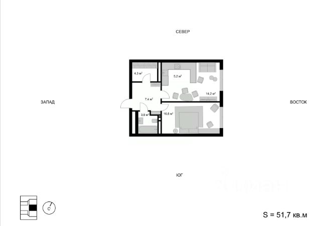 Продаётся 2-комнатная квартира в строящемся доме (Корпус 1), срок сдачи: IV-кв. 2025, общей площадью 51.7 кв.м., на 7 этаже. Многоквартирный жилой дом со встроенно-пристроенными нежилыми помещениями и автостоянкой