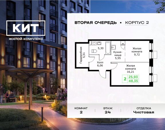 Продаётся 2-к квартира 48.65 кв.м. без отделки в ЖК "КИТ2" на 5-м этаже 25 этажного дома.Жилой комплекс "Кит 2" спроектирован в урбанистической концепции "Город в Городе". Объект бизнес-класса предлагает рациональный подход к набору опций, необходимых для гармоничной жизни. Проект представляет собой два корпуса, которые образуют единую приватную территорию. Ее доминантой является двор с красивым ландшафтным дизайном и различными зонами, ориентированными на интересы жителей разного возраста. При создании пространства в приоритет ставился комфорт жителей. В шаговой доступности находятся: торговый центр, рестораны, кинотеатры, спортивный зал, образовательные учреждения и множество других объектов в сфере услуг. Преимущества проекта: - 3 корпуса для приватной жизни - Видовые характеристики (просматриваются Москва - Сити и Останкинская телебашня) - Широкая квартирография по всем типам квартир - Увеличенное остекление - 3 варианта отделки: БОРДО, СТОКГОЛЬМ, ОСЛО - Богатая развлекательная инфраструктура - Высокий уровень безопасности территории Расположение комплекса: - 2,2 км до Волковского шоссе - 2,8 км до Ярославского шоссе - 5,7 км до МКАД - 5 минут пешком до ж/д станции "Мытищи" и Автовокзала - 18 минут до станции метро "Комсомольская" - 30 минут до станции метро "Медведково"