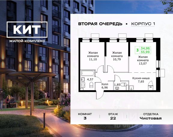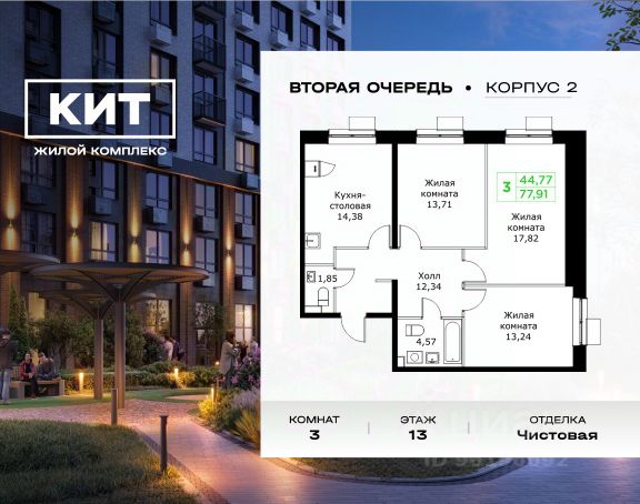 Дом сдан. Выдаем ключи! Продаётся 2-к квартира 55.2 кв.м. с чистовой отделкой в ЖК "КИТ" на 18-м этаже 25 этажного дома. Жилой комплекс "Кит" спроектирован в урбанистической концепции "Город в Городе". Объект бизнес-класса предлагает рациональный подход к набору опций, необходимых для гармоничной жизни. Проект представляет собой два корпуса, которые образуют единую приватную территорию. Ее доминантой является двор с красивым ландшафтным дизайном и различными зонами, ориентированными на интересы жителей разного возраста. При создании пространства в приоритет ставился комфорт жителей. В шаговой доступности находятся торговый центр, рестораны, кинотеатры, спортивный зал, образовательные учреждения и много других сфер услуг. Преимущества проекта: - Видовые характеристики (просматриваются Москва - Сити и Останкинская телебашня) - Широкая квартирография по всем типам квартир - Увеличенное остекление - 3 варианта отделки: без отделки, white box или чистовая отделка в скандинавском и итальянском стилях - Школа и детский сад рядом - Богатая развлекательная инфраструктура - Высокий уровень безопасности территории Расположение комплекса: - 5 минут пешком до ж/д "Мытищи" и автовокзала: - 19 минут до станции м. "Комсомольская" - 30 минут до станции м. "Медведково" - 2,2 км до Волковского шоссе - 2,8 км до Ярославского шоссе - 5,7 км до МКАД