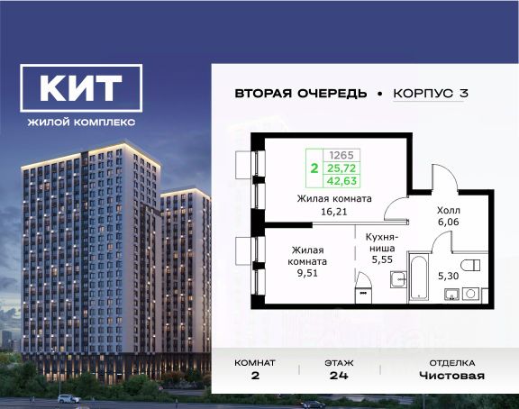 Дом сдан. Выдаем ключи! Продаётся 1-к квартира 39.6 кв.м. без отделки в ЖК "КИТ" на 10-м этаже 25 этажного дома. Жилой комплекс "Кит" спроектирован в урбанистической концепции "Город в Городе". Объект бизнес-класса предлагает рациональный подход к набору опций, необходимых для гармоничной жизни. Проект представляет собой два корпуса, которые образуют единую приватную территорию. Ее доминантой является двор с красивым ландшафтным дизайном и различными зонами, ориентированными на интересы жителей разного возраста. При создании пространства в приоритет ставился комфорт жителей. В шаговой доступности находятся торговый центр, рестораны, кинотеатры, спортивный зал, образовательные учреждения и много других сфер услуг. Преимущества проекта: - Видовые характеристики (просматриваются Москва - Сити и Останкинская телебашня) - Широкая квартирография по всем типам квартир - Увеличенное остекление - 3 варианта отделки: без отделки, white box или чистовая отделка в скандинавском и итальянском стилях - Школа и детский сад рядом - Богатая развлекательная инфраструктура - Высокий уровень безопасности территории Расположение комплекса: - 5 минут пешком до ж/д "Мытищи" и автовокзала: - 19 минут до станции м. "Комсомольская" - 30 минут до станции м. "Медведково" - 2,2 км до Волковского шоссе - 2,8 км до Ярославского шоссе - 5,7 км до МКАД Квартира от застройщика в Мытищах.