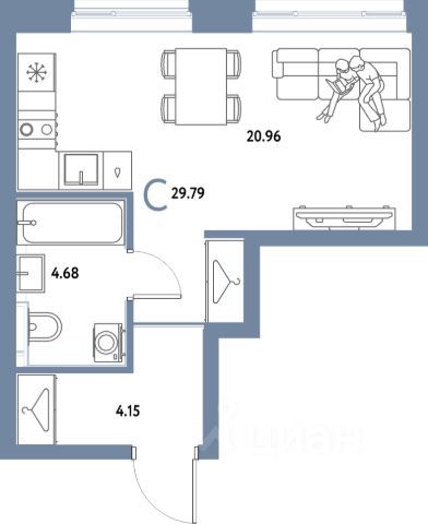 • ✅ Минимальная площадь: 19,8 м²