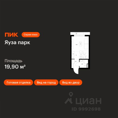 Продаётся квартира-студия площадью 19,9 кв.м на 2 этаже 15 этажного дома (Корпус 13, Секция 1) проекта ПИК Яуза парк. Светлый просторный подъезд на уровне земли, функциональная планировка, большие окна, c отделкой. Жилой квартал "Яуза парк" возводится в Мытищах, в 5 минутах ходьбы от одноимённой ж/д станции. Проект включает 20 домов разной этажности с благоустроенными дворами-парками. Сейчас в квартале началось строительство новых корпусов 7-12. Это отличная возможность купить квартиру по стартовой цене. Индивидуальный дизайн фасадов разработали архитектурные бюро KATARSIS и RHIZOME. Вблизи жилого квартала появятся шумопоглощающие экраны, позволяющие забыть о том, что неподалёку находятся железнодорожные пути. На первых этажах домов откроются магазины, кафе, салоны красоты и другие полезные сервисы. Рядом есть школы и детские сады, магазины и ТРЦ "Красный кит". На территории проекта появится благоустроенная набережная реки Яузы и пешеходный бульвар для прогулок всей семьёй. Водонапорную башню XIX века, расположенную на территории "Яуза парка", мы реставрируем и создадим вокруг неё общественное пространство для отдыха жителей квартала. Для прогулок отлично подойдёт Мытищинский центральный парк культуры и отдыха, расположенный в 10 минутах ходьбы, и Лосиный остров — в 24 минутах. Дорога на автомобиле до Ярославского шоссе займёт не более 3 минут, до МКАД — 10 минут. Артикул 1057386 (Застройщик ООО "Специализированный "НМ-Консалт")