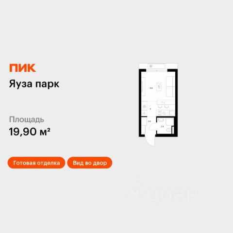 Продаётся квартира-студия площадью 19,9 кв.м на 2 этаже 15 этажного дома (Корпус 13, Секция 1) проекта ПИК Яуза парк. Светлый просторный подъезд на уровне земли, функциональная планировка, большие окна, c отделкой. Жилой квартал "Яуза парк" возводится в Мытищах, в 5 минутах ходьбы от одноимённой ж/д станции. Проект включает 20 домов разной этажности с благоустроенными дворами-парками. Сейчас в квартале началось строительство новых корпусов 7-12. Это отличная возможность купить квартиру по стартовой цене. Вблизи жилого квартала появятся шумопоглощающие экраны, позволяющие забыть о том, что неподалёку находятся железнодорожные пути. На первых этажах домов откроются магазины, кафе, салоны красоты и другие полезные сервисы. Рядом есть школы и детские сады, магазины и ТРЦ "Красный кит". На территории проекта появится благоустроенная набережная реки Яузы и пешеходный бульвар для прогулок всей семьёй. Водонапорную башню XIX века, расположенную на территории "Яуза парка", мы реставрируем и создадим вокруг неё общественное пространство для отдыха жителей квартала. Для прогулок отлично подойдёт Мытищинский центральный парк культуры и отдыха, расположенный в 10 минутах ходьбы, и Лосиный остров — в 24 минутах. Дорога на автомобиле до Ярославского шоссе займёт не более 3 минут, до МКАД — 10 минут. Артикул 1057386 (Застройщик ООО "Специализированный "НМ-Консалт")
