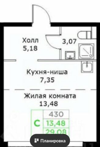 Общая площадь квартиры 29.08 квадратных метра