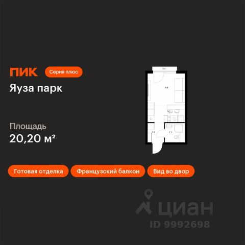 Продаётся квартира-студия площадью 19,8 кв.м на 4 этаже 24 этажного дома (Корпус 14, Секция 1) проекта ПИК Яуза парк. Светлый просторный подъезд на уровне земли, функциональная планировка, большие окна, c отделкой. Жилой квартал "Яуза парк" возводится в Мытищах, в 5 минутах ходьбы от одноимённой ж/д станции. Проект включает 20 домов разной этажности с благоустроенными дворами-парками. Сейчас в квартале началось строительство новых корпусов 7-12. Это отличная возможность купить квартиру по стартовой цене. Индивидуальный дизайн фасадов разработали архитектурные бюро KATARSIS и RHIZOME. Вблизи жилого квартала появятся шумопоглощающие экраны, позволяющие забыть о том, что неподалёку находятся железнодорожные пути. На первых этажах домов откроются магазины, кафе, салоны красоты и другие полезные сервисы. Рядом есть школы и детские сады, магазины и ТРЦ "Красный кит". На территории проекта появится благоустроенная набережная реки Яузы и пешеходный бульвар для прогулок всей семьёй. Водонапорную башню XIX века, расположенную на территории "Яуза парка", мы реставрируем и создадим вокруг неё общественное пространство для отдыха жителей квартала. Для прогулок отлично подойдёт Мытищинский центральный парк культуры и отдыха, расположенный в 10 минутах ходьбы, и Лосиный остров — в 24 минутах. Дорога на автомобиле до Ярославского шоссе займёт не более 3 минут, до МКАД — 10 минут. Артикул 1056598 (Застройщик ООО "Специализированный "НМ-Консалт")