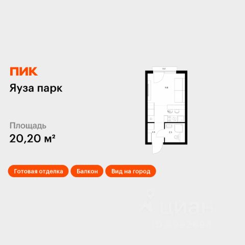 Продаётся квартира-студия площадью 20,2 кв.м на 4 этаже 24 этажного дома (Корпус 5, Секция 1) проекта ПИК Яуза парк. Светлый просторный подъезд на уровне земли, функциональная планировка, большие окна, c отделкой. Жилой квартал "Яуза парк" возводится в Мытищах, в 5 минутах ходьбы от одноимённой ж/д станции. Проект включает 20 домов разной этажности с благоустроенными дворами-парками. Сейчас в квартале началось строительство новых корпусов 7-12. Это отличная возможность купить квартиру по стартовой цене. Вблизи жилого квартала появятся шумопоглощающие экраны, позволяющие забыть о том, что неподалёку находятся железнодорожные пути. На первых этажах домов откроются магазины, кафе, салоны красоты и другие полезные сервисы. Рядом есть школы и детские сады, магазины и ТРЦ "Красный кит". На территории проекта появится благоустроенная набережная реки Яузы и пешеходный бульвар для прогулок всей семьёй. Водонапорную башню XIX века, расположенную на территории "Яуза парка", мы реставрируем и создадим вокруг неё общественное пространство для отдыха жителей квартала. Для прогулок отлично подойдёт Мытищинский центральный парк культуры и отдыха, расположенный в 10 минутах ходьбы, и Лосиный остров — в 24 минутах. Дорога на автомобиле до Ярославского шоссе займёт не более 3 минут, до МКАД — 10 минут. Артикул 940317 (Застройщик ООО "Специализированный "НМ-Консалт")