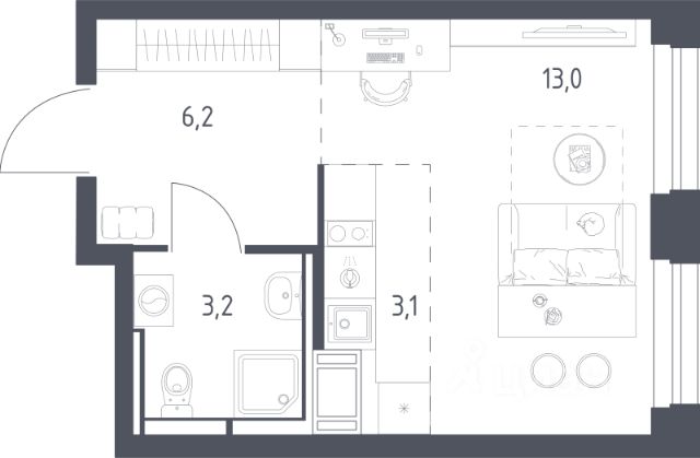 Прямая продажа от девелопера. В жилом квартале, расположенном в северо-западной части города Мытищи, продаётся студия площадью 24.90 кв.м без отделки. Квартира расположена на 13 этаже 15-этажного дома, корпус 35, в жилом квартале комфорт-класса "Новое Медведково" (девелопер Ingrad). Расположение: Мытищи - один из ближайших спутников столицы, расположенный в живописной локации на северо-востоке Московской области в окружении лесопарков, водохранилищ и озер. Уровень развития социальной, торговой и культурной инфраструктуры города приближает его к Москве, но за счёт компактности самих Мытищ делает ещё удобнее. Отличная транспортная доступность: "Новое Медведково" возводится в северо-западной части города Мытищи в Микрорайоне 17А, всего в 6 км от МКАД, вблизи остановок общественного транспорта и в непосредственной близости от Пироговского лесопарка (400 м). 28 корпусов уже введены в эксплуатацию. Путь до Москвы по Волковскому шоссе составляет не более 10 минут. Добраться можно также на электричке - 20 минут по Ярославскому направлению до станции "Ядреево", на автобусе или маршрутке до станции метро "Медведково" менее, чем за полчаса. Инфраструктура: Комплексное развитие территории проекта "Новое Медведково" предполагает строительство полной собственной инфраструктуры одновременно с возведением жилых домов, которая будет включать в себя: Лингвистическую гимназию с 4 иностранными языками на 768 учеников (уже построена и работает), 5 детских садов общей емкостью 1 060 мест (два детский сада на 400 малышей построены и работают), Школу общей емкостью 1 735 мест, медицинский центр, Спортивный комплекс и многоуровневые парковки. Помещения под коммерческую инфраструктуру на первых (нежилых) этажах домов уже арендованы собственниками бизнеса: аптеки, магазины, супер- и минимаркеты, точки бытового и сервисного обслуживания, салоны красоты, пекарни, кондитерские, развивающие студии для детей. квартира-студия в готовой новостройке в городском округе Мытищах Московской области.