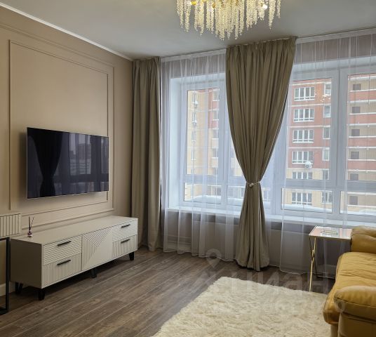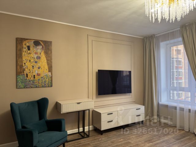 Во всей квартире натяжные потолки со встроенными светильниками, есть кондиционер.